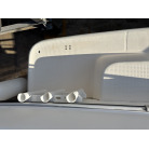 また、船尾にはトランサムステップとトランサムラダーを装備しており、海上での乗り降りやマリンプレイの際にも重宝する仕様となっております。