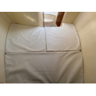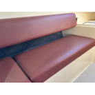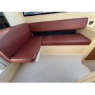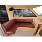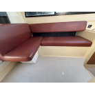 右舷側に操船席、左舷側には大人数人がゆったり座れるL字型のゲストシートを配置。シート生地に目立つような大きな破れは見受けられません。