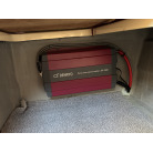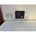 インバーター: 船内にはDENRYO製の正弦波インバーター(SP-1500)を搭載しており、左舷側前方にリモートコントローラーとAC100Vコンセントが備わっています。