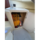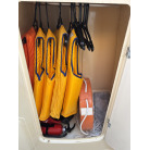 キャビネット内部にはハンガーパイプが備わっており、現在はライフジャケット等の法定備品が綺麗に収納されています。