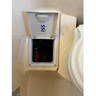 室内前方の右舷側には、木目調のドアで仕切られた個室トイレが備わられています。