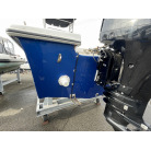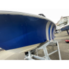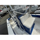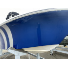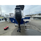 見た目は小型フィッシングボートですが、70馬力のエンジンを載せて良く走ります、波切が良くバウデッキでスプラッシュは殆ど浴びません、ポテンシャルがあるボートに見えました。