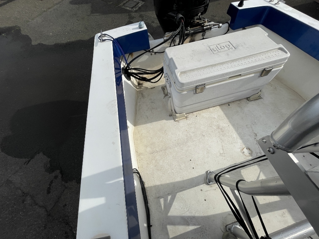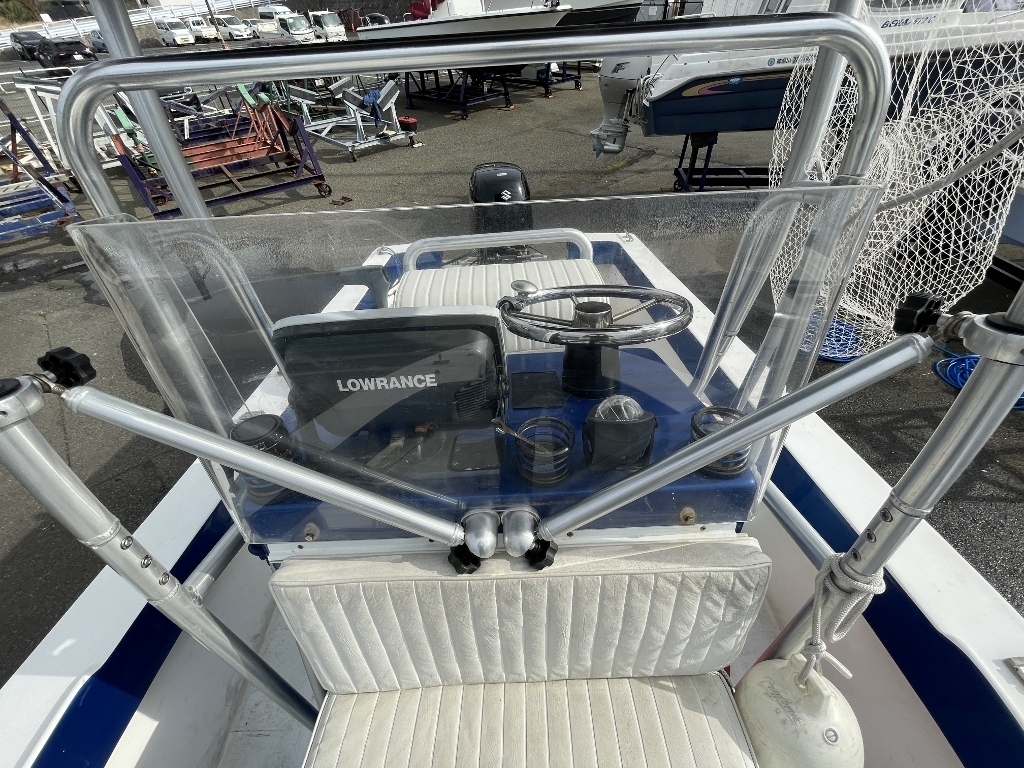 操船席周りは非常にシンプルです、LOWRANCEGPS・魚探は画面液晶が壊れていますが、本体のみ代用品をお付けします。