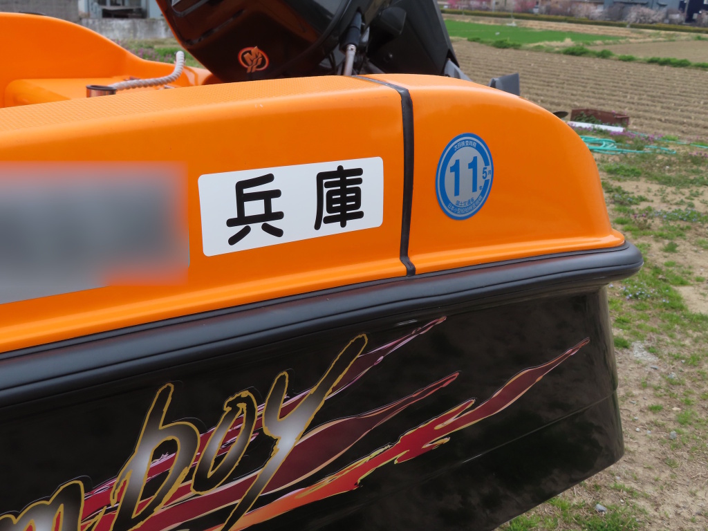 | 船検証記載馬力 | 30馬力 / 5,750rpm(回転数) | 推進機器種類 | 船外機 |