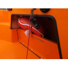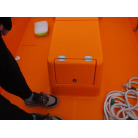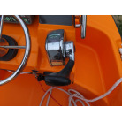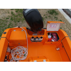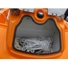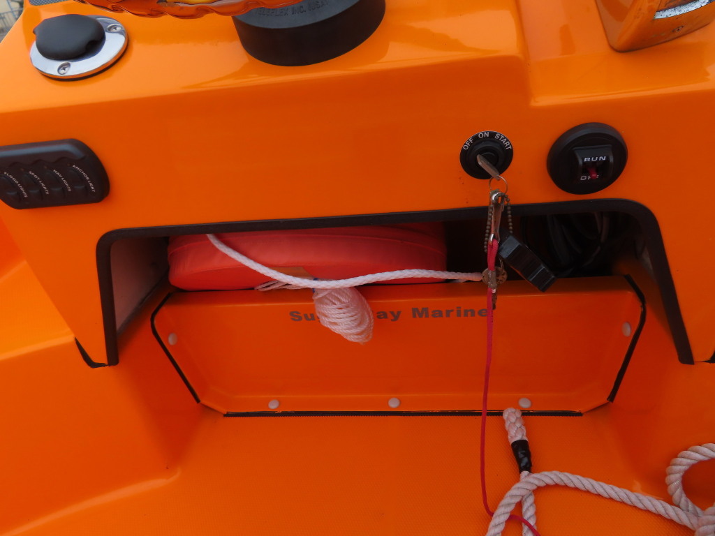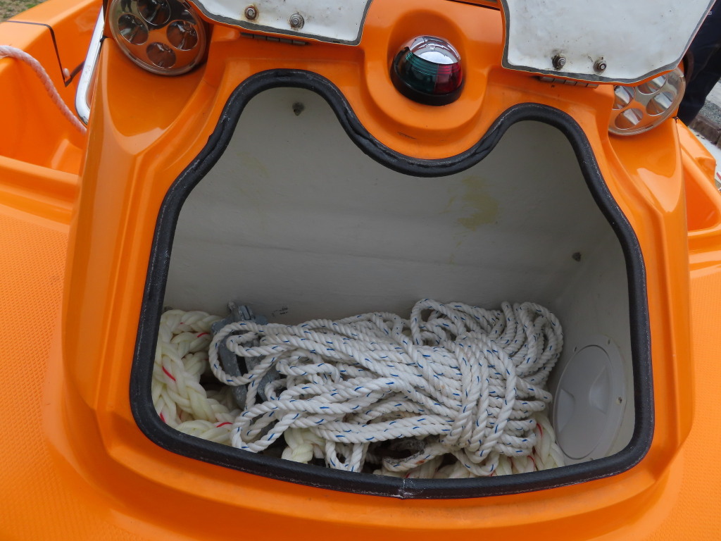 バウ側には収納スペースが装備されており、アンカーを収納することができそうです。操船パネル下部にも収納スペースがあり、現オーナー様は救命浮環を収納されていました。