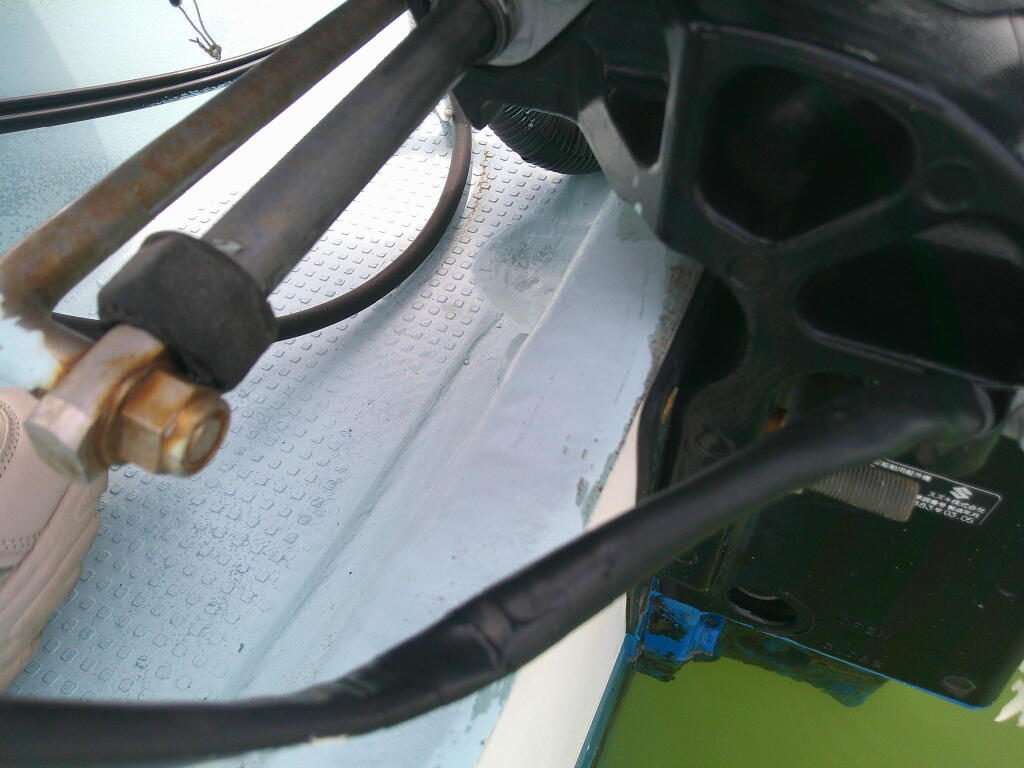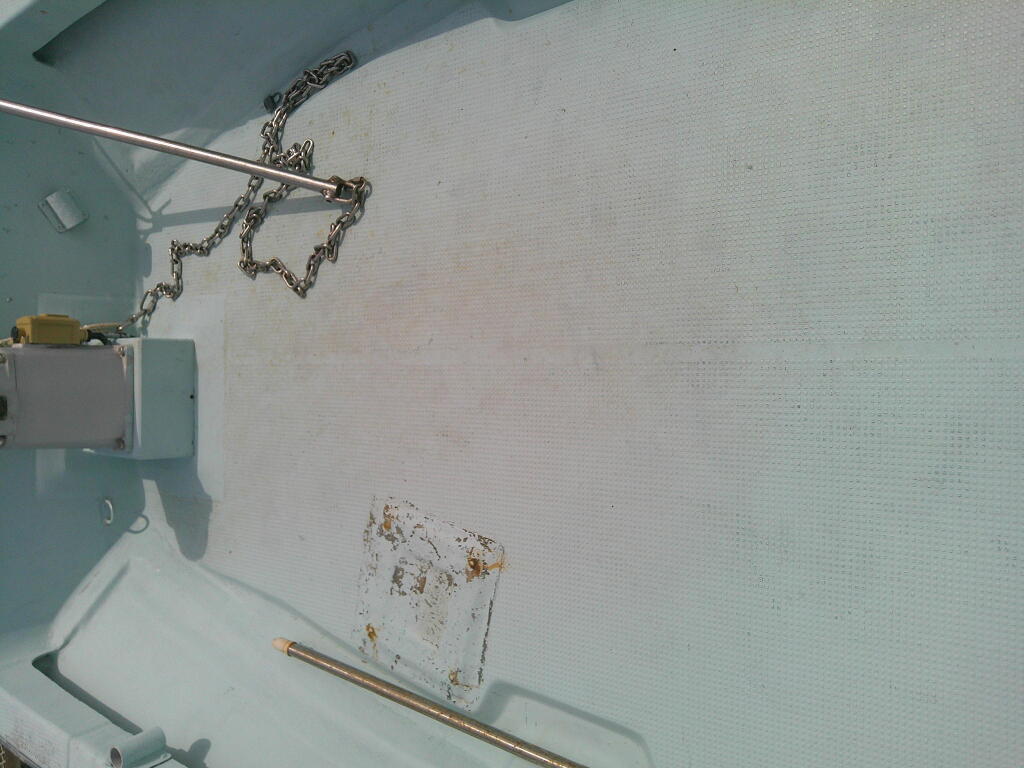 極浅い海域を通る保管場だったそうで目視した所、プロペラに多少の曲がりが生じていました。オーナー様は不都合は感じなかったとのお話ですが、下見の際は試乗を含め注意深くご確認をお願い致します。