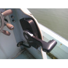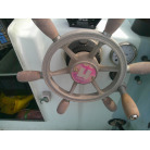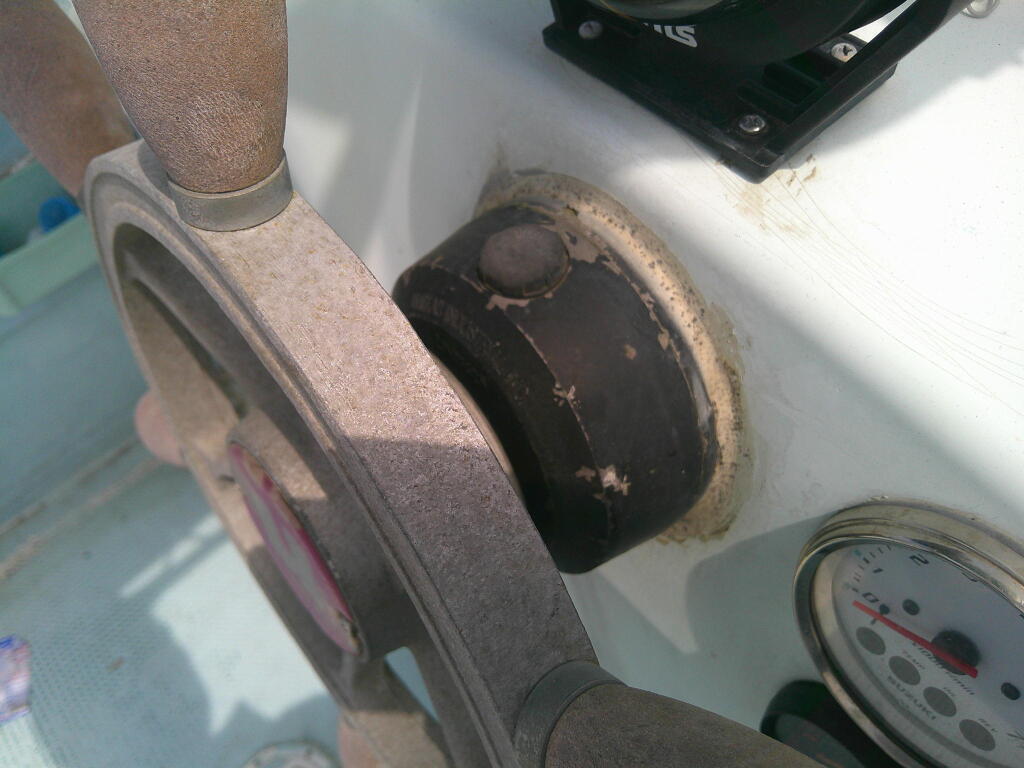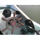 主機換装に伴い、メーターやリモコンが新調されています。操舵は油圧式です。