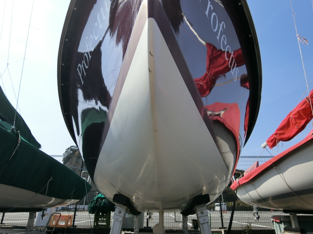 この船は神奈川県藤沢市内のヨットハーバーにて上架保管されております。
