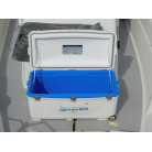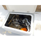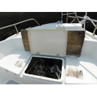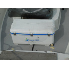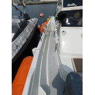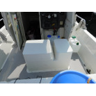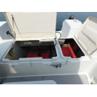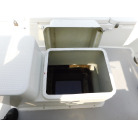 前後ともにデッキは十分にスペースがあり3~4人の釣りにも対応できそうです。電動ウィンチ、生け簀が前後に設置されています。