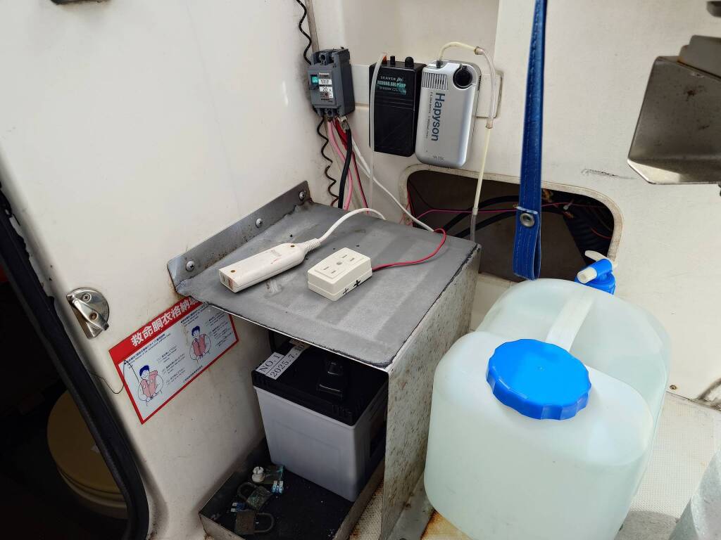 魚探用にサブバッテリー化されていました 充電はソーラーで行われていました