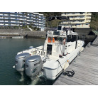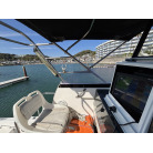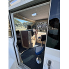 本艇は、両舷スライドドア仕様でアクセスの良い上質なキャビンを持ち、本格的なルアーフィッシングからご家族でのクルージングまで幅広く対応する人気の高い一艇です。