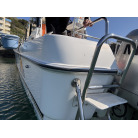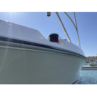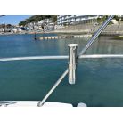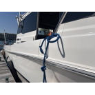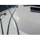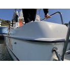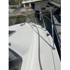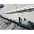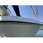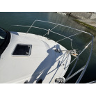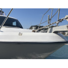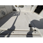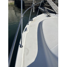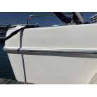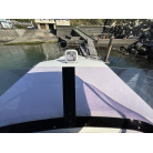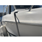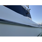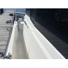 さらに特筆すべきは、オーナー様が釣行やご家族でのクルージング時の安全面を最優先に考え、費用をかけてこだわってカスタムされたレール類です。バウレールは十分な高さ出しの増設が行われており、波のある日のバウデッキでのキャスティングや、お子様を乗せた際にも落水の不安を軽減する安心感があります。