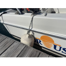 黒いゴム部分には、紫外線による経年相応の退色(白ボケ)や、フェンダーとの擦れ、離着岸時に付いたと思われる小キズが各所に散見されます。