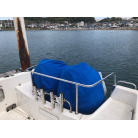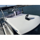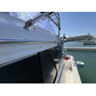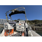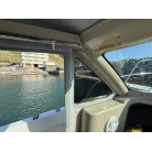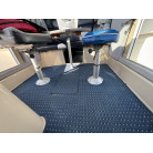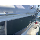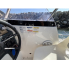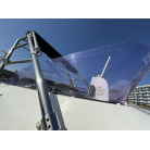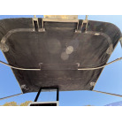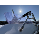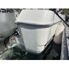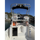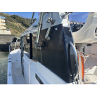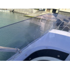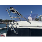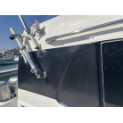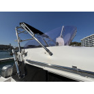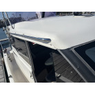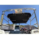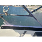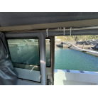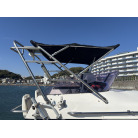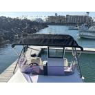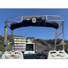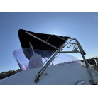 操船席とナビシート(計2脚)の上部は、黒色のソフトオーニング(折りたたみ展開式)と頑丈なステンレスフレームで覆われており、強い日差しを避けて快適なクルージングが可能です。