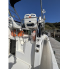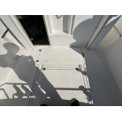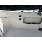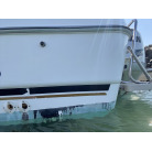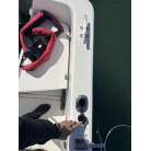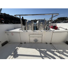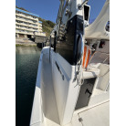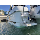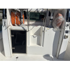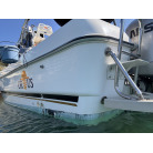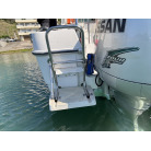 左舷側の船尾(トランサム)には、海へのエントリーに便利なFRP製ステップと、ステンレス製の折りたたみ式トランサムラダーが装備されています。