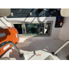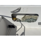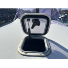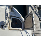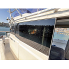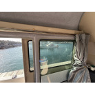 キャビン両舷のダークスモーク仕様のサイドウィンドウは、中古艇でよく見受けられる水垢や白濁といった経年劣化がほとんど見られません。