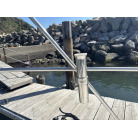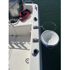 トランサム(船尾)のモーターウェル前方に増設された頑丈なステンレス製のハンドレールです。