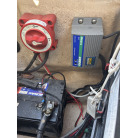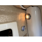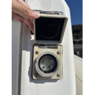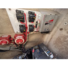 また、操船席右下の壁面にはBLUE SEA SYSTEMS製のAC分電盤(120V電圧計・各ブレーカースイッチ)が組み込まれております。