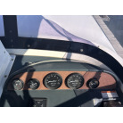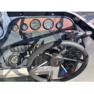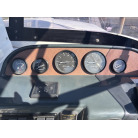 メインパネルには、タコメーター(回転計)2基、燃料計、チルト計などの各種アナログメーターが配置されており、木目調パネルに目立つ割れ等は確認できません。