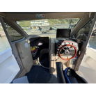 計器類は見やすく配置されており、スロットルにはMORSE製の電子リモコン(KE-4)が採用されているため、ワイヤー式にはないスムーズでストレスのない操船が可能です。ダッシュボード上にはモニター類を設置する十分なスペースも確保されています。