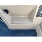 操船席の左側(左舷側前方)からは、一段下がってバウバース(船首側のベッドスペース)や個室トイレへと続くアプローチが設けられており、船内移動の動線もスムーズです。