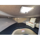室内操船席の左側にある通路から、そのままアクセス可能な前方室(バウバース)です。通路の右側には、独立した個室トイレが備わっています。
