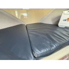 キャビン内の船尾側(後方壁面)には、ゆったりと腰掛けられる黒いソファが配置されています。