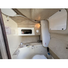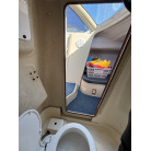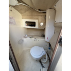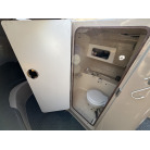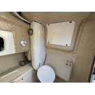 操船コンソール左舷側の茶色の扉からアクセスできる、独立した個室トイレスペースです。