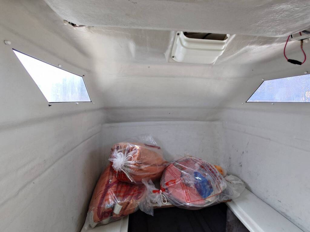 エンジンルームハッチの上には、他船流用のマリンシートが設置されていました