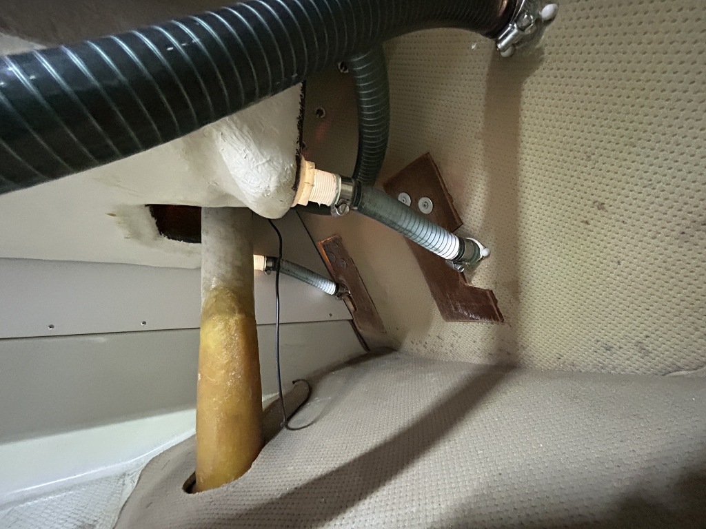 また、デッキの一部に塗装が施されている箇所や、トランサム部に配線用の穴が確認されますが、いずれも実用上問題のない範囲となります。