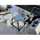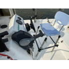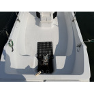 バウデッキに固定式の椅子があり、その下にはイケスが設置されています。