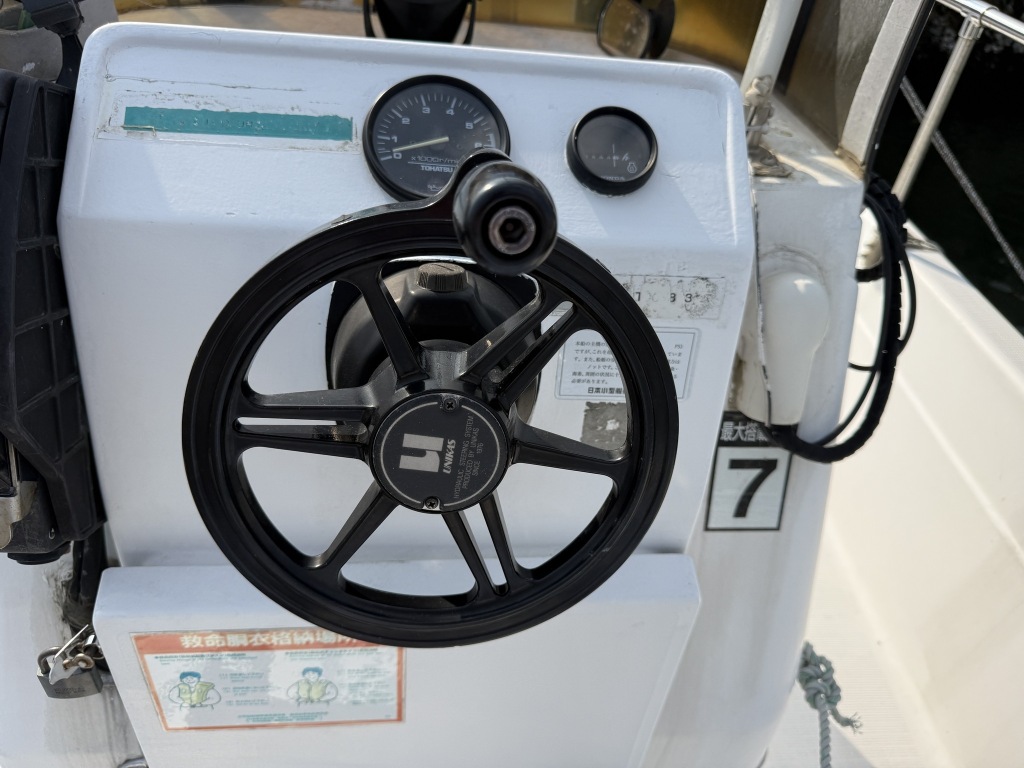 コンソール周りは、標準の計器類以外は魚探のみのシンプルな装備となっています。