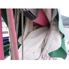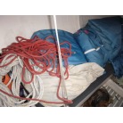 キャビン内には5~6枚のセールが保管されていますが、オーナー様も何が何枚有るのか把握されていません。
