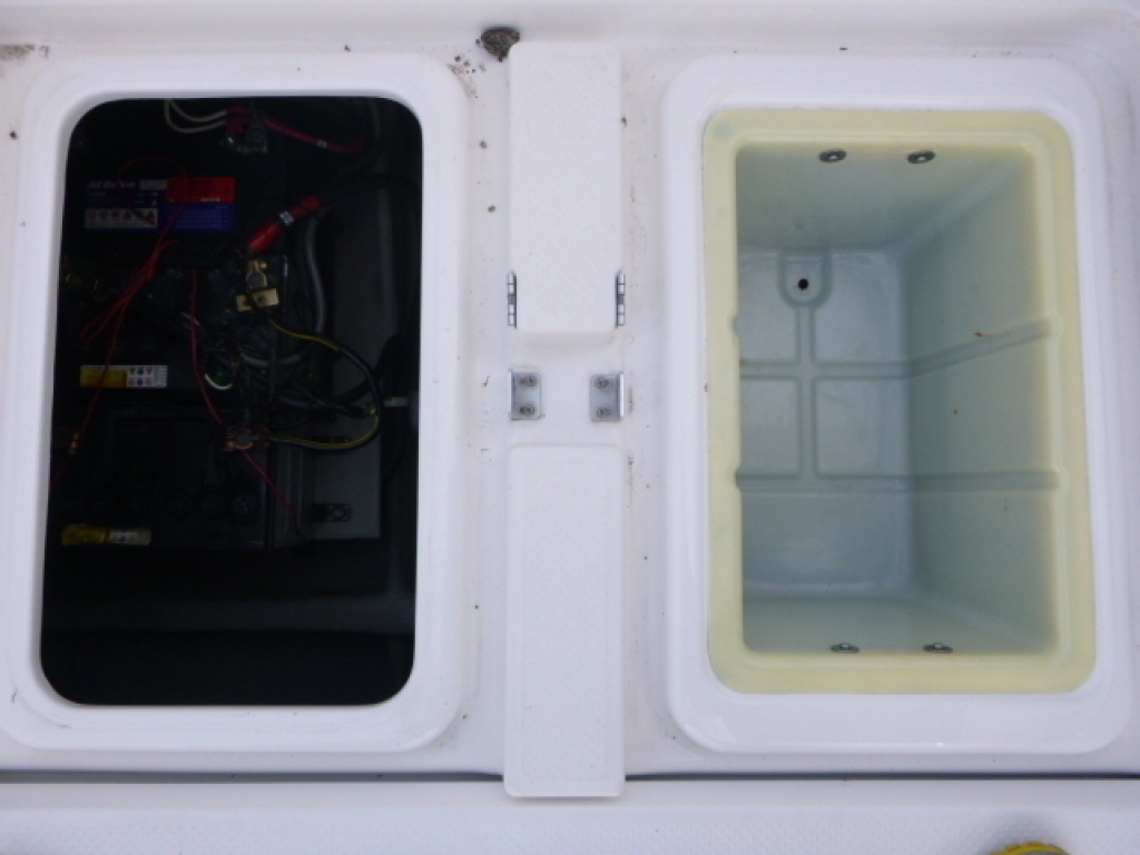 デッキには、電動リールコンセント、循環イケスが装備されています。