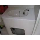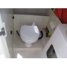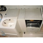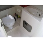右舷側には、ギャレーと左舷側に電動個室のマリントイレが装備されています。
