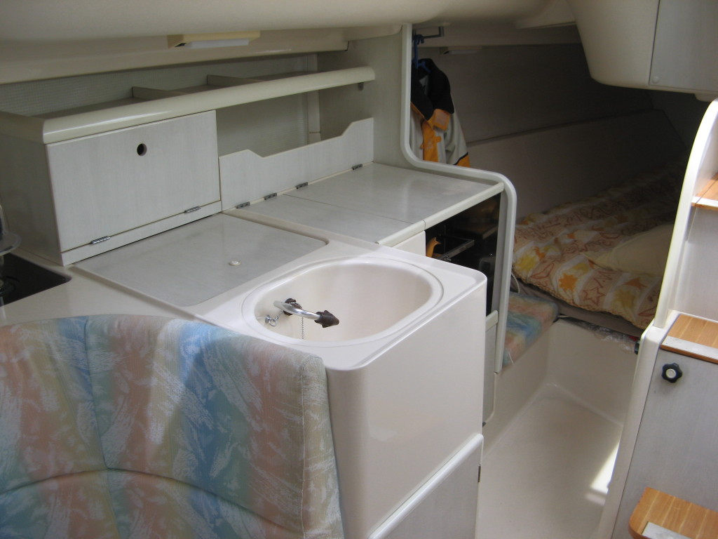 ゆったりとしたキャビンで、白を基調とした清潔感のあるキャビンとなっており、現オーナーさんによりレストアが完全に行われており、同型艇でもこれだけ綺麗なヨットは他に無いと思います。