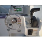 コックピットには、エンジンを積み替えた時に付けたアワーメーターと、以前からのアワーメーターがそのまま付いています。スロットルレバーも新調されておされており油圧ハンドルになっております。