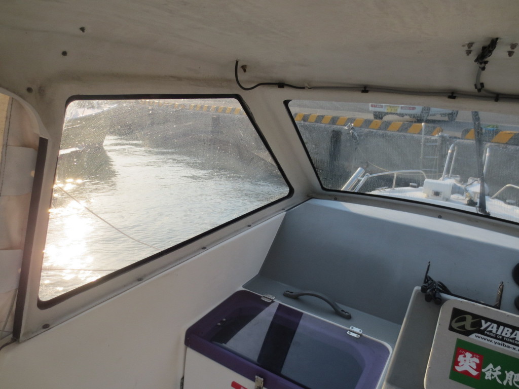 操船席は、それほど劣化は見られず、特に傷みやすいサイドウインドー、室内へのハッチも状態はそれほど悪くありません。