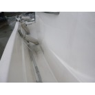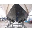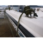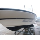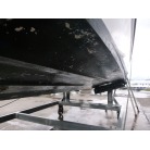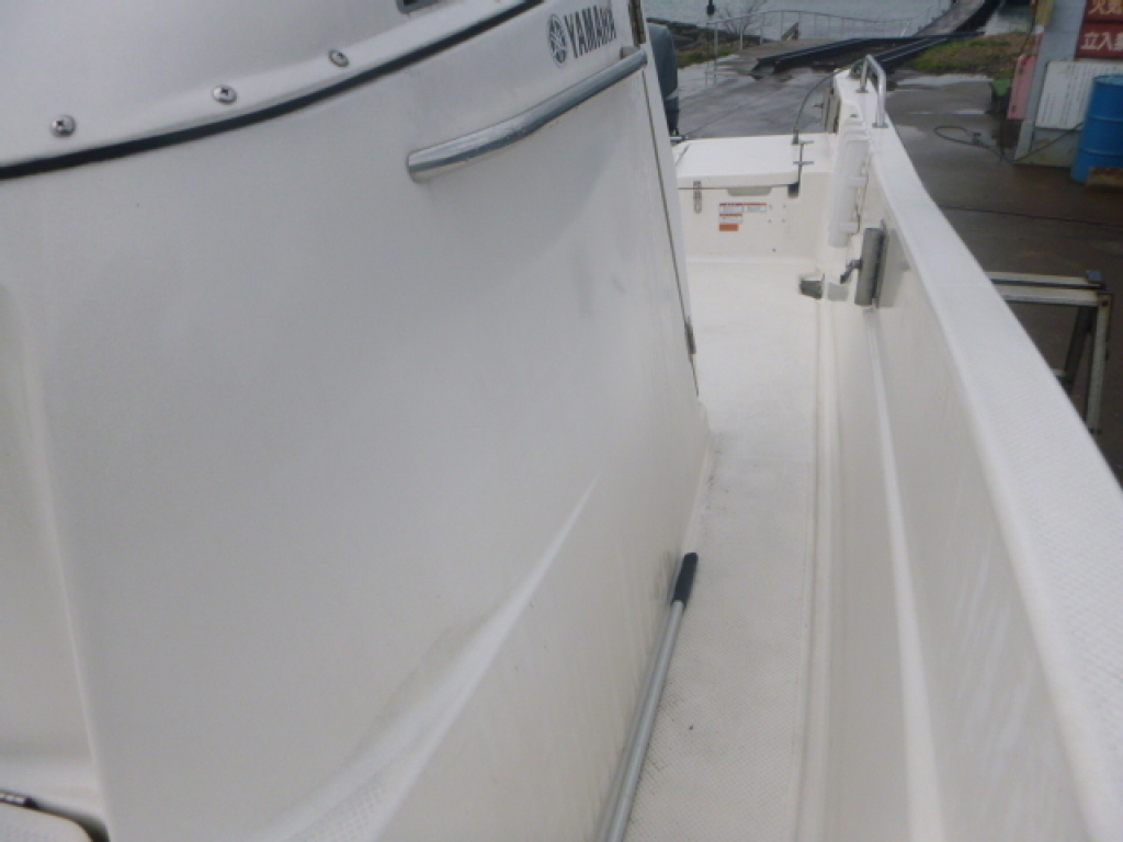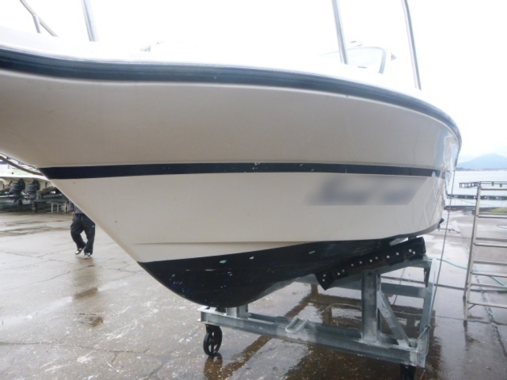 ハルに黒い汚れが見られますが、桟橋のタイヤバリアーに擦れた色が付着した物です。