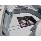 操船席後部には、魚探と連動させたモニターも装備」されています。
