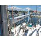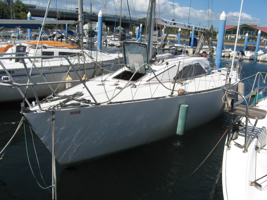 船体は、進水から約33年が経過していますので、内外装ともに経年劣化を感じる艇ですが、この艇は本来レース艇として豪州かニュジーランドで船体は製造されたそうです。 船体はケブラー、 ペラはフェザーリング二枚ペラとなっています。