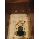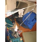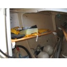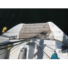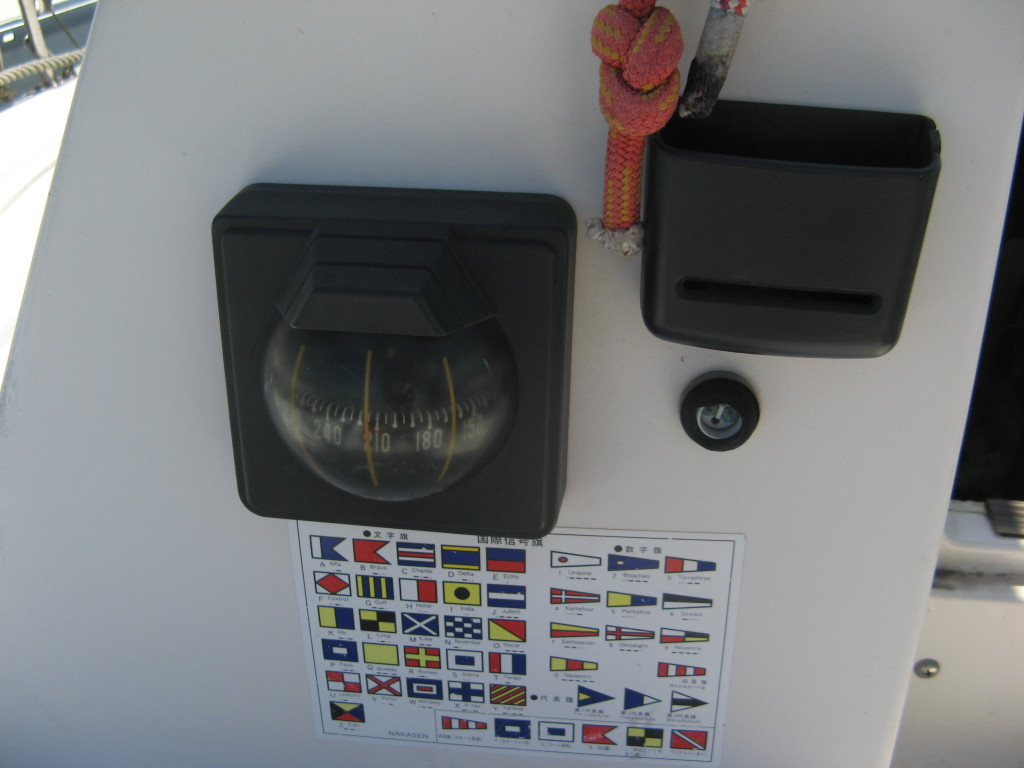 バウは、レース艇のままになっています、ここに手動式のトイレを装備しています。