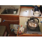 中央には、ギャレーを装備しシンクとジンバル式のコンロの置き場を装備しています。