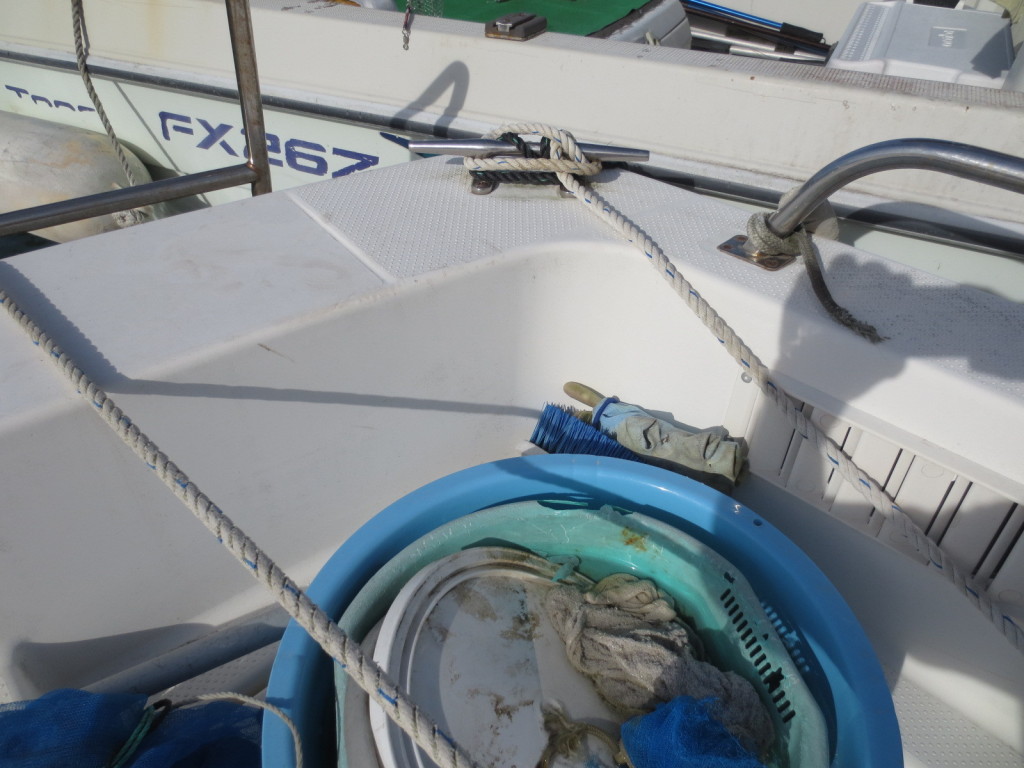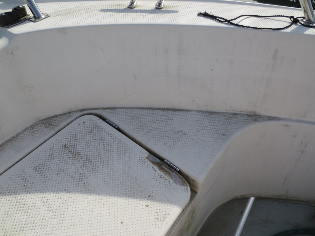 デッキ周りは年式相応で火山灰等で汚れていますが掃除をすれば綺麗になる感じです。ロープロッカーやイケスの蓋など傷んだ箇所もありますが修復をされています。