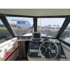操船席周りは見やすい位置にGPS魚探を装備し、前後左右に純正のカーテンがあります。