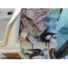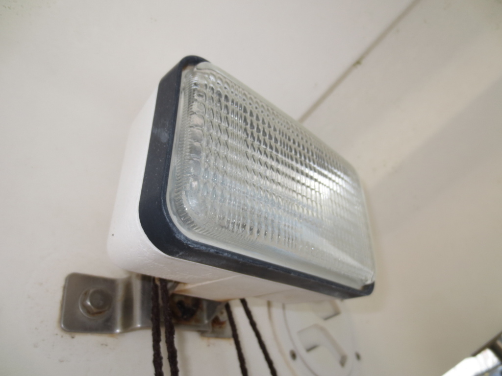 室内は操船席エリアとカーテンで仕切ることができます。ここも沢山の釣り道具がありますが特に不具合は無いように感じました。写真に写る釣り道具等は降ろさせて頂きます。