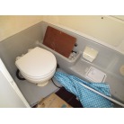 トイレは操船席より一段下がった場所にありドアもあるので、女性やお子様のゲストも安心できる装備です。取材時には動作確認を行っておりません。あまり使用されていないような感じでした。