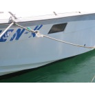 この艇は宮崎県南部の漁港に海上係留されています。
