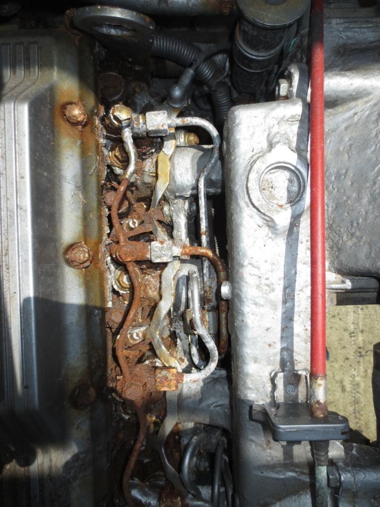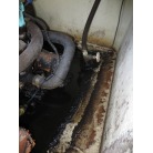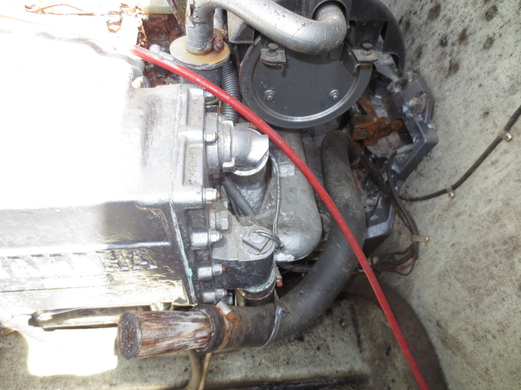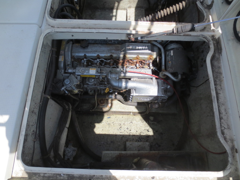 エンジン周りは、オイルが抜けて船底に溜まっていました。お立合頂いた業者様に聞いたことろオイルパンの腐食ではないでしょうか?との事です。よって現在はエンジンを始動することは出来ず整備が必要なアウトレットになります。