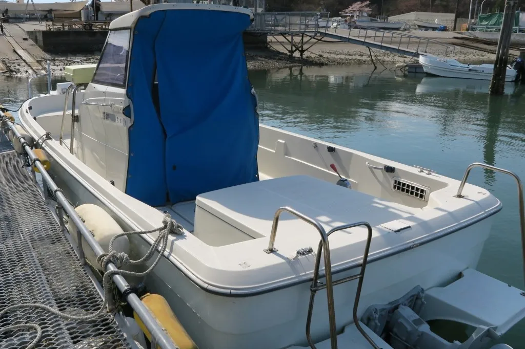 ガンネルやハルなど全体的に年式相応に擦りキズは見られますが、使用に影響するような大きな傷みはありません。船底塗装は毎年春に実施しており、今年も4月に亜鉛板交換・ドライブ塗装と合わせて船底塗装を実施済です。
